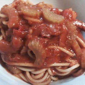 炒酱步骤:油-肉-芹菜-意面酱-番茄酱-盐-糖 如果炒制过程中发现太干,可以适当加水