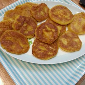 分成一坨坨,煎之前试试味道,有些南瓜甜糖就可以放少些,反之