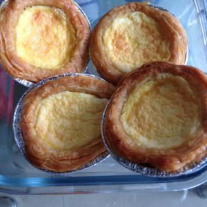 牛奶液冷却后加入低筋面粉搅拌均匀过滤,倒入蛋挞皮8分满