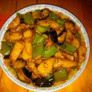 土豆茄子用油炸三分钟甜椒过油就行