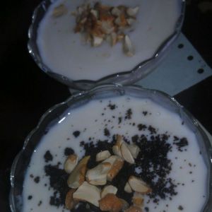 淋上小许蜂蜜腰果在冰箱拿出来砸碎撒在酸奶上即可