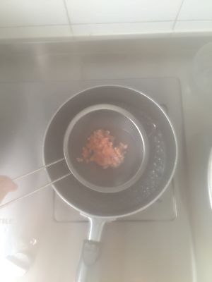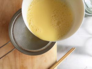 蛋黄里放入水,不要加太多,否则整出来的鸡蛋羹内会有出现很多水,搅拌后用过滤筛过滤掉过多的泡沫,这样会使蛋蒸出来的更嫩,没有气泡。