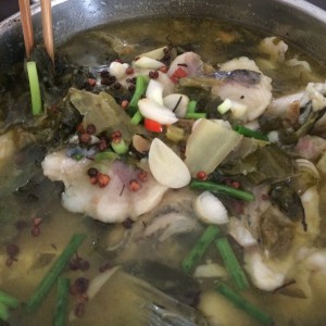 草鱼洗干净,切片刀法一定要好,切薄一点。用盐搓一下鱼片,再洗干净,加入盐,生粉淀粉红薯粉都可以,料酒(我放的是自己酿的米酒),蛋清(使鱼片润滑嫩)腌制一会,另一边开始熬汤!