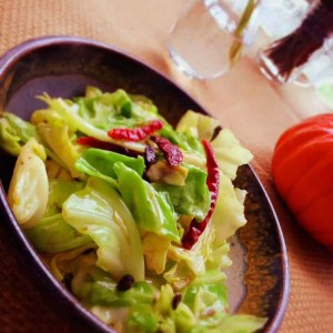 大火,下包菜给盐巴持续翻炒到包菜6分熟给鸡粉炒匀关火出锅!喜欢熟一些的多炒些时间!