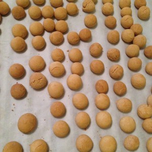 揉成小团团,小小的还可以练习宝宝的手指细小动作发育,摆的时候要有间隔。放裂可以在揉好的小团团上刷点水或奶。尽量均匀,这样火候能一样。