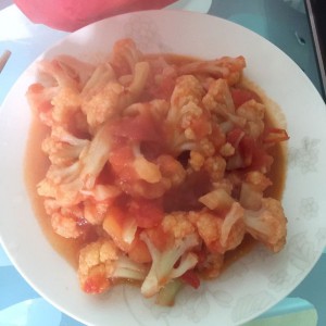 菜花炒的差不多,就把切好的番茄下锅一起翻炒,