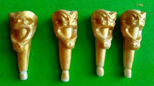 白色干佩斯搓成圆锥形,在用欧式花纹做椅脚装饰,刷上金粉,总共做4支椅脚