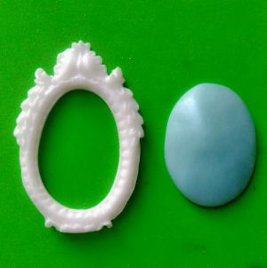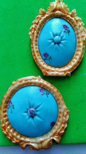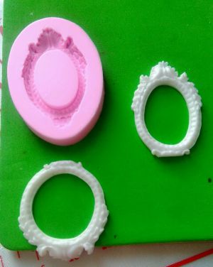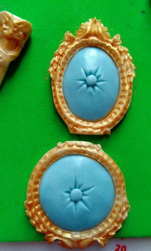 开始制作欧式高椅:准备一个硅胶的欧式镜框模,干佩斯印出2个镜框,1个椭圆形,一个整成圆形
