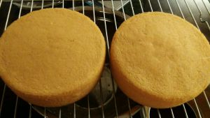 准备2个6寸的戚风蛋糕胚,方子是米多小鱼的,一次就成功,值得一试的好方子