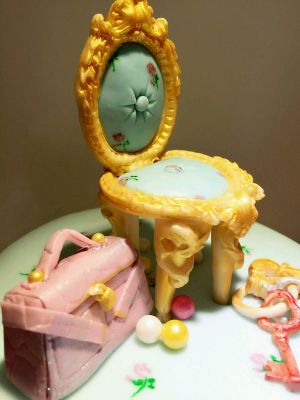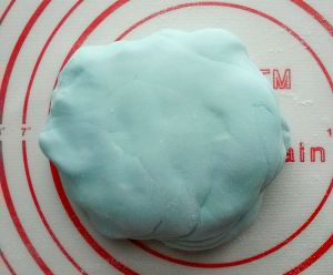 翻糖膏加蓝绿色素,调得与欧式椅的颜色一致,揉匀擀平