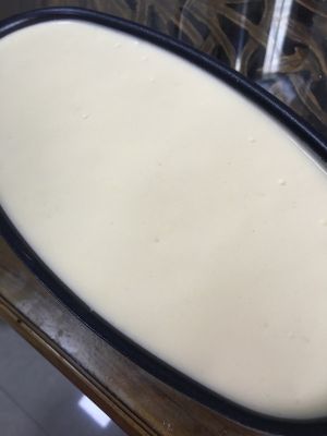 烤箱预热,上下火150度,70分钟,烤箱倒数第二层,水浴法烤制。