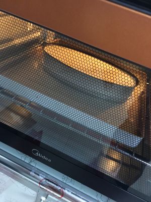 烤完后焖制30—40分钟,取出,放冰箱冷藏4—5小时,再脱模食用。