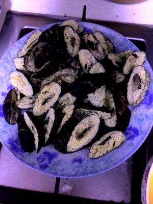 蝉蛹用水焯一下,用剪刀剪开!