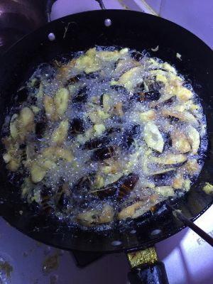 沾过鸡蛋的蝉蛹下锅炸