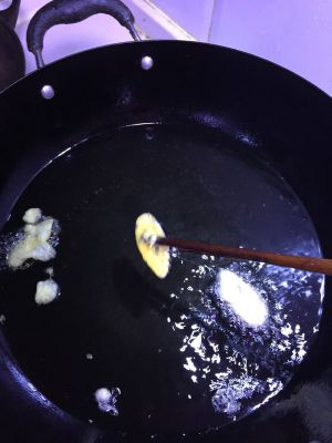 大火炸酥,用勺子搅拌觉得硬啦,闻起来有香味,就可以盛出来