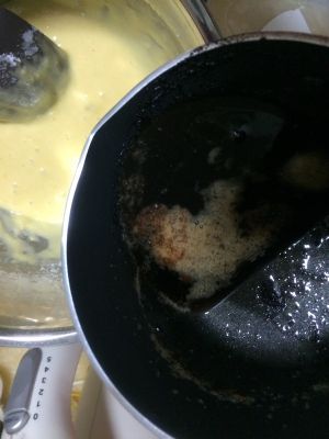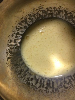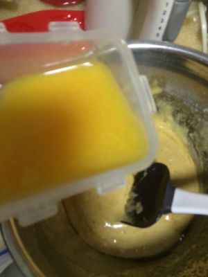 黄油溶化至焦糖色放凉后加入面糊里拌匀。