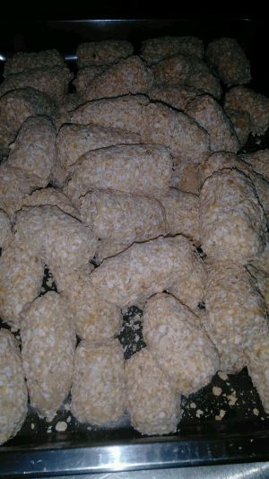 挂完糊沾燕麦片(要均匀,用手攥下炸的时燕麦片候掉的就少了)
