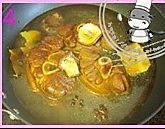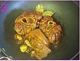 等冰糖完全融化并均匀的裹住蹄膀以后,喷少许料酒翻炒,然后加入适量生抽、老抽,小火慢炒,使蹄膀均匀的着上颜色;