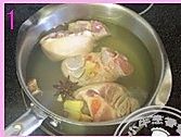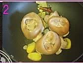 热锅冷油放入姜片、蒜块、八角2枚、香叶2片、桂皮一小块、冰糖4-5小块小心翻炒,等冰糖稍稍融化放入控干水分的猪蹄膀小火煎黄;