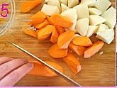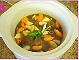 将蹄膀、汤汁、胡萝卜、土豆、口菇等一起放入慢炖锅,加几滴香醋、葱结炖至肉烂、汤汁浓稠,起锅前10分钟加少许盐调味即可。