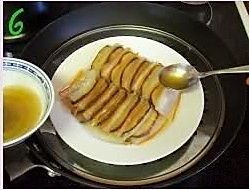 小心将盘子里的汤汁倒入另一口锅中,小火加热,入适量水淀粉勾兑成玻璃芡汁;