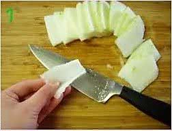 冬瓜去皮切成0.5厘米左右的厚片,然后从中间剖开,但靠近表皮出相连;