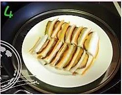 按照一片冬瓜夹一片冬菇的秩序,将所有材料摆放在盘子里,摆上胡萝卜丝装饰,水开后,隔水大火蒸20-25分钟,冬瓜变成半透明状;