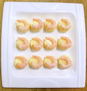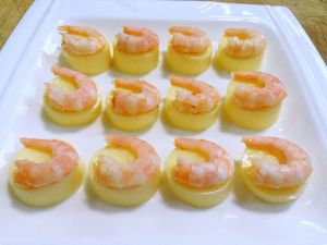将虾仁摆放在日本豆腐上