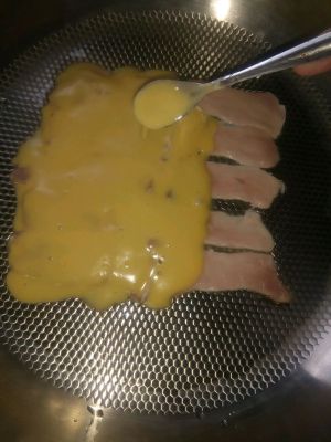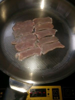 6.把火加到400,等到肉变色的时候把以前制作的面酱倒上,油炸致金黄色就可以吃了。