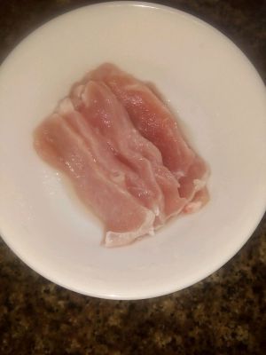 5.用少量的油把锅底刷一遍。再把肉放到上面。