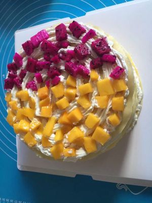 14.所有东西都准备好就可以堆千层了!一层皮+一层奶油+一层水果,依次放上去!做好的千层放冰箱冷藏2小时左右口味更佳!