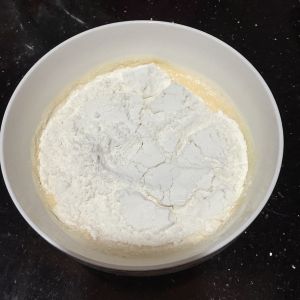 1.把糖粉和鸡蛋混合放入碗里,用手动搅拌器搅拌均匀。