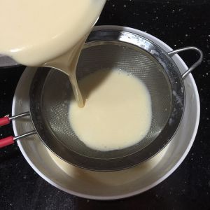 5.搅拌好的千层糊进行过晒,去除颗粒面粉。