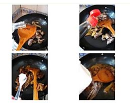 倒入适量米酒、生抽、老抽、翻炒上色后,加入盐,倒入开水没过鸭肉。