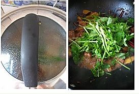 下油热锅,下姜片爆香,倒入鸭肉,翻炒把多余的油脂逼出来。