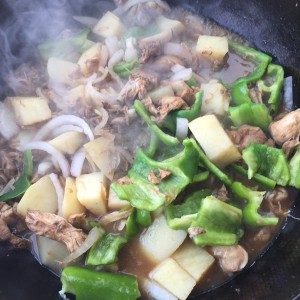 放入焯好的鸡肉 翻炒下放生抽老抽盐糖 炒至变色 加水 水量没火鸡肉 等沸之后转小火 盖锅盖15分钟左右