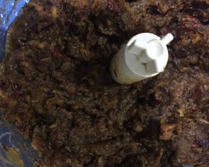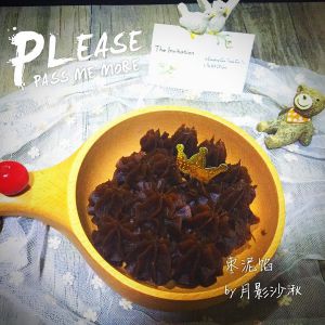 将打好的枣泥过筛,这时已经可以看到枣泥比较细腻,但是比较湿润。