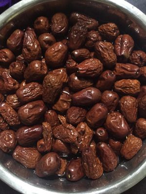 浸泡后的红枣去核上锅大火蒸20分钟。