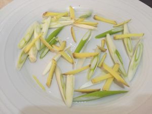 盘子底层铺香葱段,姜丝,去除鱼腥味