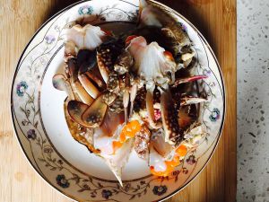 首先,先把螃蟹刷刷刷干净,然后拆成小块备用.