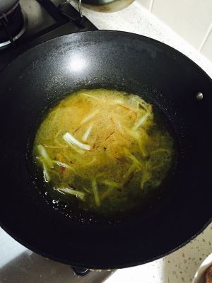 葱姜切丝,放一点点油爆锅,然后加水,把咖喱块融化,煮煮煮