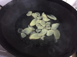 沸水切姜片入锅
