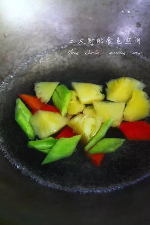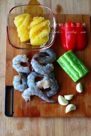倒入炸好的大虾仁和菠萝、苦瓜、红彩椒,翻炒均匀就可以了。