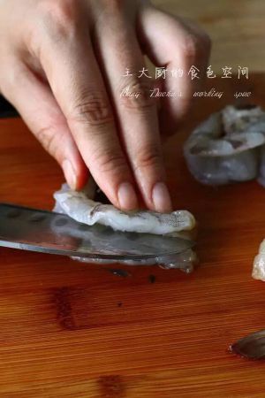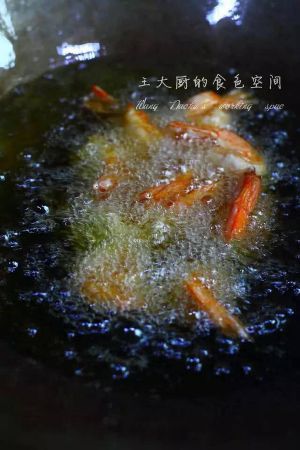 炒锅加上油烧热,放入大虾仁炸到外壳稍硬。