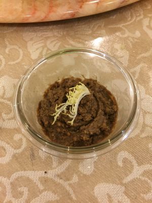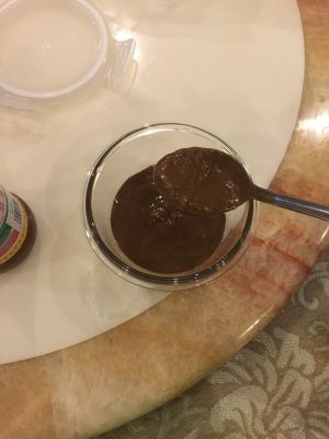 在碗里放两大勺芝麻原酱,记住是原酱,没有调料的那种~