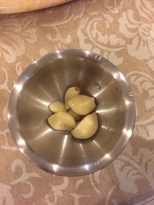 大蒜加盐用捣盅捣成泥~不爱大蒜的可以少放点