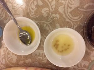 接下来就是放榨好的柠檬汁和初榨橄榄油了,但是不能一次性放入,要放点油搅一搅,放点柠檬汁搅一搅,轮流放入