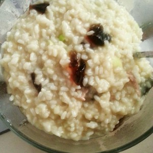 大米煮开后倒入姜丝,一半皮蛋丁,葱花,转小火熬十分钟。
