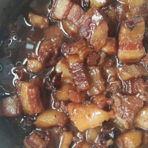 再由高压锅中倒入炒锅中进行收汁,待汤汁粘稠适量为止即可出锅。