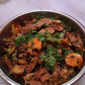锅内倒油 把菜全部倒入 放入海底捞麻辣香锅料翻炒 出锅
